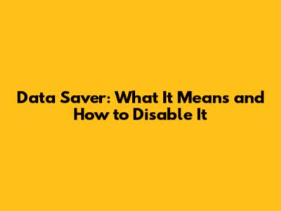 Data Saver: What It Means And How To Disable It