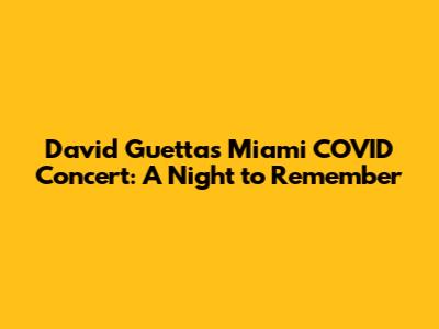 In conclusion, the David Guetta Miami COVID concert was a truly remarkable event that showcased the power of music, technology, and human connection. It brought joy, hope, and support to millions during a challenging time and left a lasting legacy of generosity and innovation. It's a night that will be remembered for years to come.