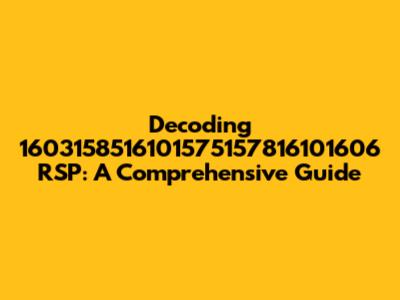 Decoding 1603158516101575157816101606 RSP: A Comprehensive Guide