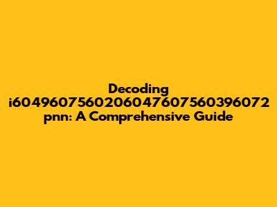 Decoding I6049607560206047607560396072 Pnn: A Comprehensive Guide