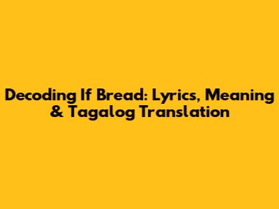 Decoding 'If Bread': Lyrics, Meaning & Tagalog Translation