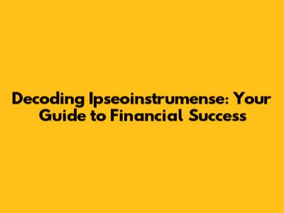 Decoding Ipseoinstrumense: Your Guide To Financial Success