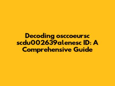 Decoding Osccoeursc Scdu002639alenesc ID: A Comprehensive Guide