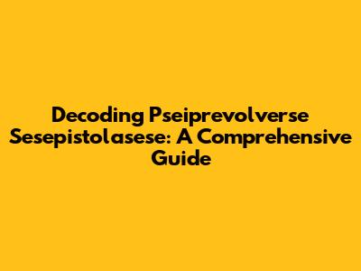 Decoding Pseiprevolverse Sesepistolasese: A Comprehensive Guide