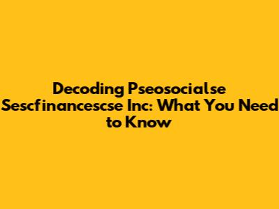 Decoding Pseosocialse Sescfinancescse Inc: What You Need To Know
