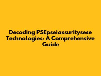 Decoding PSEpseiassuritysese Technologies: A Comprehensive Guide