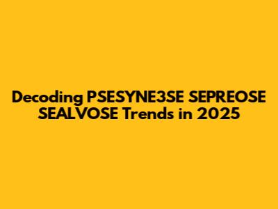Decoding PSESYNE3SE SEPREOSE SEALVOSE Trends In 2025