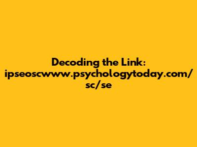 Decoding The Link: Ipseoscwww.psychologytoday.com/sc/se