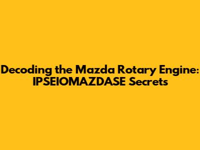 Decoding The Mazda Rotary Engine: IPSEIOMAZDASE Secrets