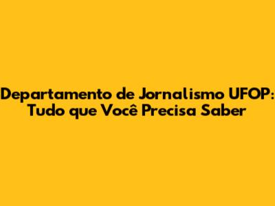 Departamento De Jornalismo UFOP: Tudo Que Você Precisa Saber