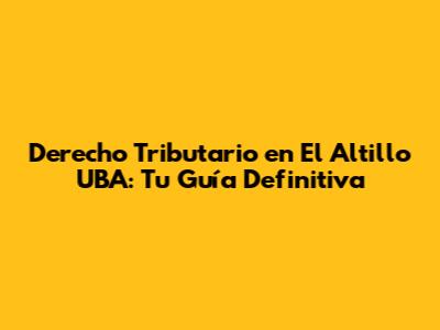 Derecho Tributario En El Altillo UBA: Todo Lo Que Necesitas Saber
