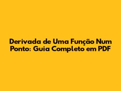 Derivada De Uma Função Num Ponto: Guia Completo Em PDF