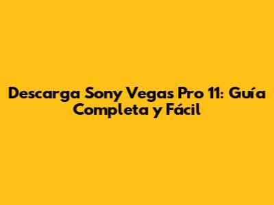 Descarga Sony Vegas Pro 11: Guía Completa Y Fácil