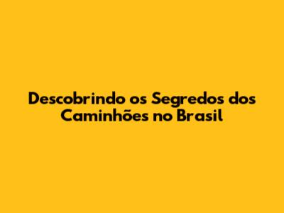 Descobrindo Os Segredos Dos Caminhões No Brasil