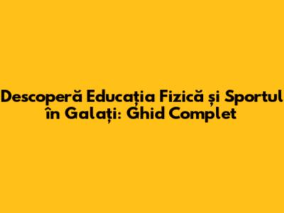 Descoperă Educația Fizică Și Sportul În Galați: Ghid Complet