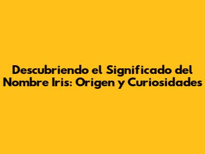 ¡Hola a todos! Hoy vamos a sumergirnos en el fascinante mundo de los nombres y descubrir qué hay detrás de uno muy especial: Iris. Si estás considerando este nombre para tu bebé, o simplemente sientes curiosidad por su significado, ¡has llegado al lugar correcto! Prepárense para un viaje lleno de historia, mitología y curiosidades. ¿Están listos, amigos? ¡Empecemos!