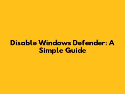 Disable Windows Defender: A Simple Guide