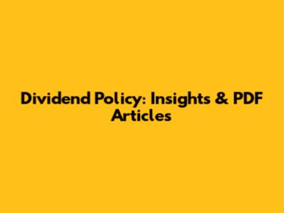 Dividend Policy: Insights & PDF Articles