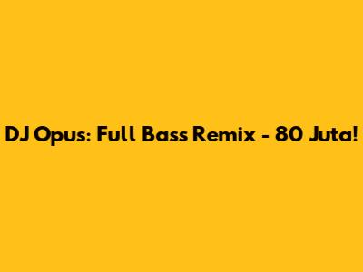 Hey guys! Ever heard a track that just makes you wanna move? Well, let's dive into the world of DJ Opus and his insanely popular full bass remix, often dubbed the "80 Juta" edition. This isn't just music; it's an experience, a vibe, a whole mood! So, buckle up as we explore what makes this remix so special, why it’s got everyone talking, and where you can get your fix of that earth-shattering bass.