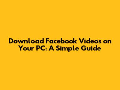 Download Facebook Videos On Your PC: A Simple Guide