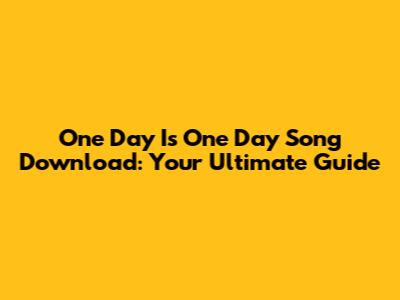 Download One Day Is One Day Song: All You Need To Know