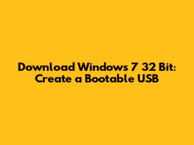 Download Windows 7 32 Bit: Create A Bootable USB