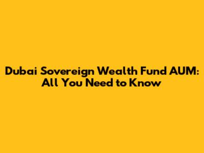 Dubai Sovereign Wealth Fund AUM: All You Need To Know