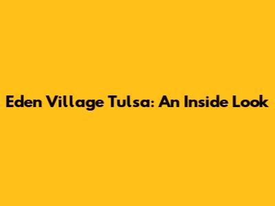 Eden Village Tulsa: Inside Look