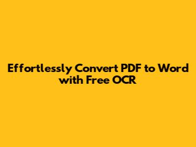 Effortlessly Convert PDF To Word With Free OCR