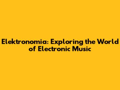 Elektronomia: Exploring The World Of Electronic Music