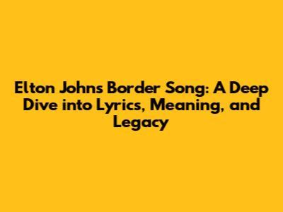 Hey music lovers! Ever found yourself completely captivated by a song? That's how I feel about Elton John's "Border Song." It's not just a song; it's an experience. Today, we're going to dive deep into the lyrics of "Border Song," explore its meaning, and uncover why it remains a beloved classic. So, grab your headphones, get comfy, and let's journey into the heart of this incredible tune. We'll be looking at the lyrics border song, how it has been interpreted, its use of the lrc format, and what makes it a cornerstone of Elton John's amazing catalog. This is going to be a fun exploration, guys!