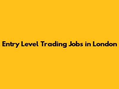 Entry Level Trading Jobs In London