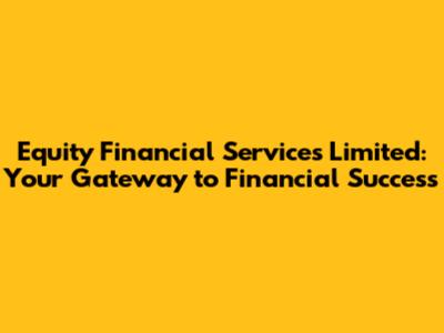 Hey guys! Ever heard of Equity Financial Services Limited? If you're looking to navigate the complex world of finance, these are the folks you want to know. In this article, we're diving deep into what makes Equity Financial Services Limited tick, what they offer, and how they can help you achieve your financial dreams. Let's get started!