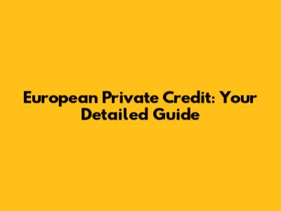 European Private Credit: Your Detailed Guide