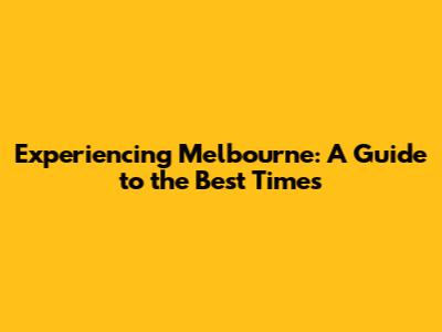 Experiencing Melbourne: A Guide To The Best Times