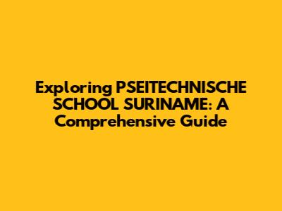Exploring PSEITECHNISCHE SCHOOL SURINAME: A Comprehensive Guide