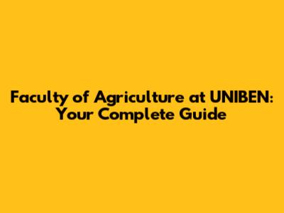 Faculty Of Agriculture At UNIBEN: A Complete Guide