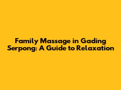 Hey guys! Ever feel like you and your loved ones need a serious dose of relaxation? Well, if you're in the Gading Serpong area, you're in luck! Family massage in Gading Serpong is becoming super popular, and for good reason. It's a fantastic way to unwind, bond with your family, and boost your overall well-being. In this guide, we'll dive deep into everything you need to know about experiencing the ultimate family massage experience. We'll explore what makes it so special, where to find the best spots, and what to expect during your session. Ready to discover how family massage in Gading Serpong can transform your family's relaxation game? Let's get started!