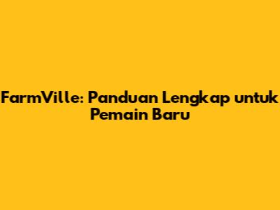 FarmVille: Panduan Lengkap Untuk Pemain Baru