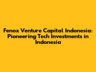 Fenox Venture Capital: Investing In Indonesia's Future