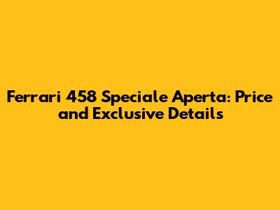 Ferrari 458 Speciale Aperta: Price And Exclusive Details