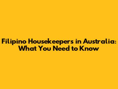 Filipino Housekeepers In Australia: What You Need To Know