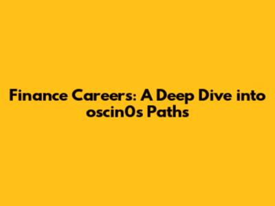 Finance Careers: A Deep Dive Into Oscin0's Paths