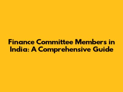 Finance Committee Members In India: A Comprehensive Guide