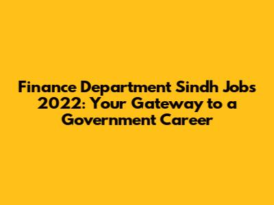 Finance Department Sindh Jobs 2022 Announced