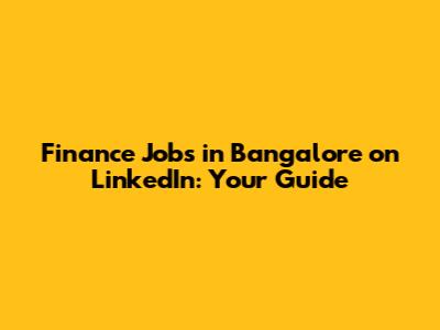 Finance Jobs In Bangalore On LinkedIn: Your Guide
