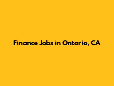 Finance Jobs In Ontario, CA