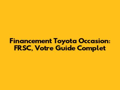 Financement Toyota Occasion: FRSC, Votre Guide Complet