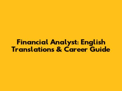 Financial Analyst: English Translations & Career Guide