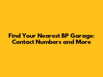 Find BP Garage Near You: Contact Info & Services